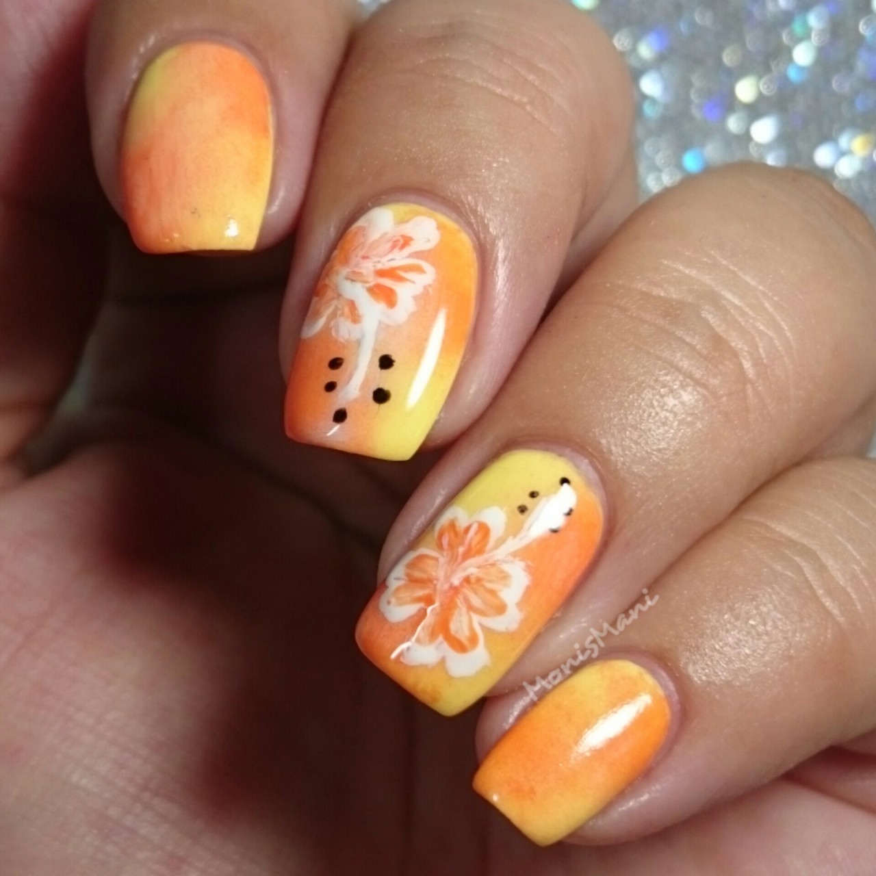 I don’t know what it is about this time of year that always inspires me to do some Hibiscus nails!! These year I decided to do them over a sponged on base using SinfulColors V.IPeach and Feel the Vibe.