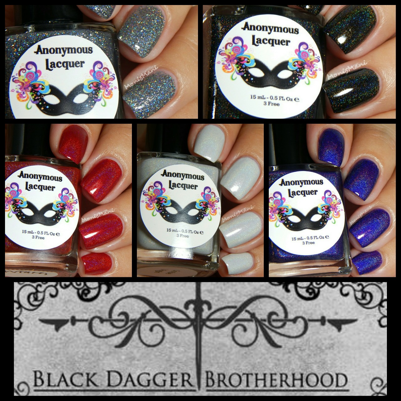 How are you?! I’m super duper excited! I’m a huge fan the book series by J.R Ward called “The Black Dagger Brotherhood” and today I have Anonymous Lacquer ‘s “The Brotherhood Series” collection (inspired of course by the books) to show you. I can honestly tell you that I literally squealed when this collection popped up on my social media. I had not tried this brand before but I’d heard great things about it from friends so I knew I really needed to get these babies!