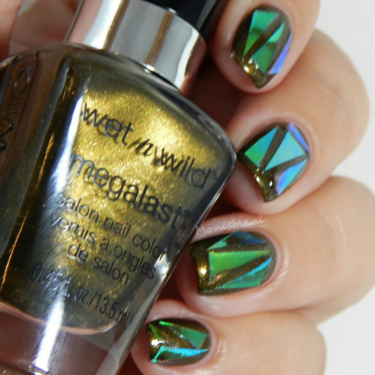 wet n wild- moss have a failed shattered glass mani