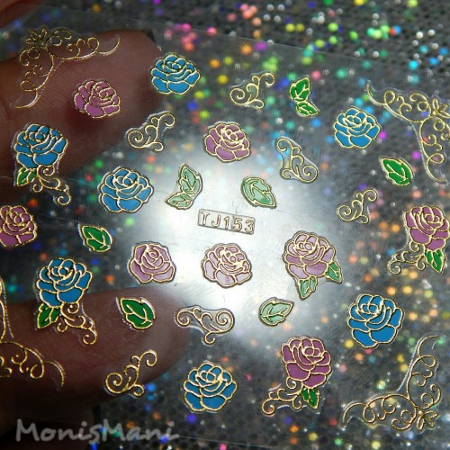 How are you??? Today I want to show you a super cute and easy mani featuring BornPrettyStore Nail Art stickers. As we all know water decals and nail art stickers are pretty much the easiest way to spice up a mani so it’s always great to have a great variety in your nail art supplies. BPS is really good for this as they have an awesome selection for a very very good price! Let’s take a look at these pretty blue and pink rose stickers (ref TJ153)