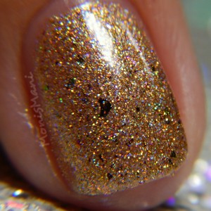 I have not gone too into detail in most of the descriptions out of fear of being repetitive.. (you can only ooohh and aaahhh so many times before it becomes annoying). My overall opinion of the collection is that it is absolutely wonderful! loooove the colors, the formula is fantastic all around, really easy to work with, no sinking or fishing with the glitters, flakies are Rachel’s strong point IMO so those were just perfect. Drying time is wonderful having waited about 2min in between coats for swatches and an overall dry time of 15min with a finished mani and using Seche Vite as top coat. Just fanstastic all around.