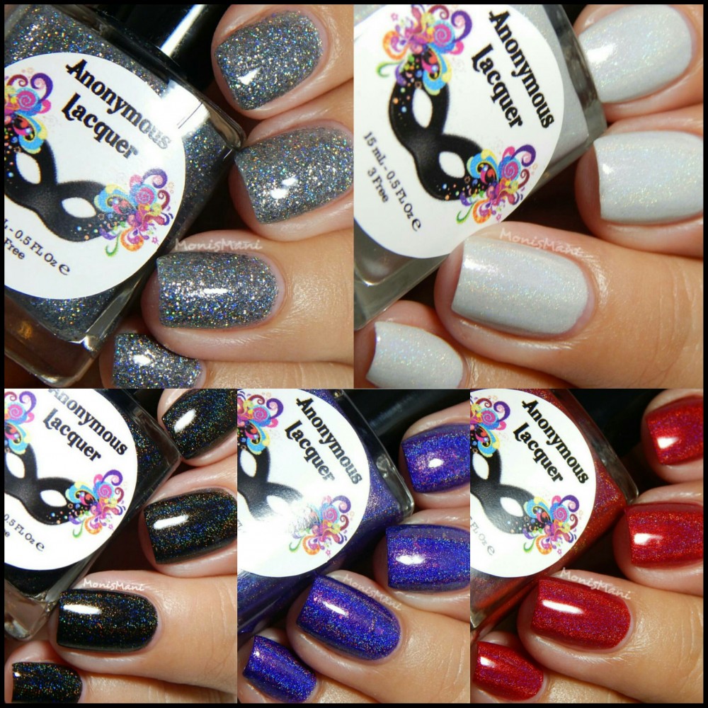 What a wonderful surprise to find a new to you brand that just absolutely knocks your socks off! My first ever collection from Anonymous Lacquer was a dream, with my all time favorite red holo (wrath– bottom right), the perfect white holo (scribe virgin– top right) all so beautiful and perfect and all inspired and named after one of my favorite series of books. An absolute Win Win and also.. a new die-hard brand for me.