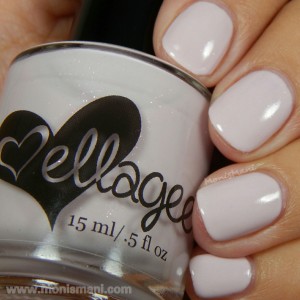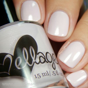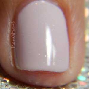 Is an ever so soft slightly greyed rosy pink with a touch of pink shimmer, inspired by Pantone’s color of the year, Rose Quartz. Very pretty, very soft, the shimmer is a lot more visible in real life. The formula was super easy you see 2 coats plus one coat of top coat. Drying time is 3-4 min in between coats.
