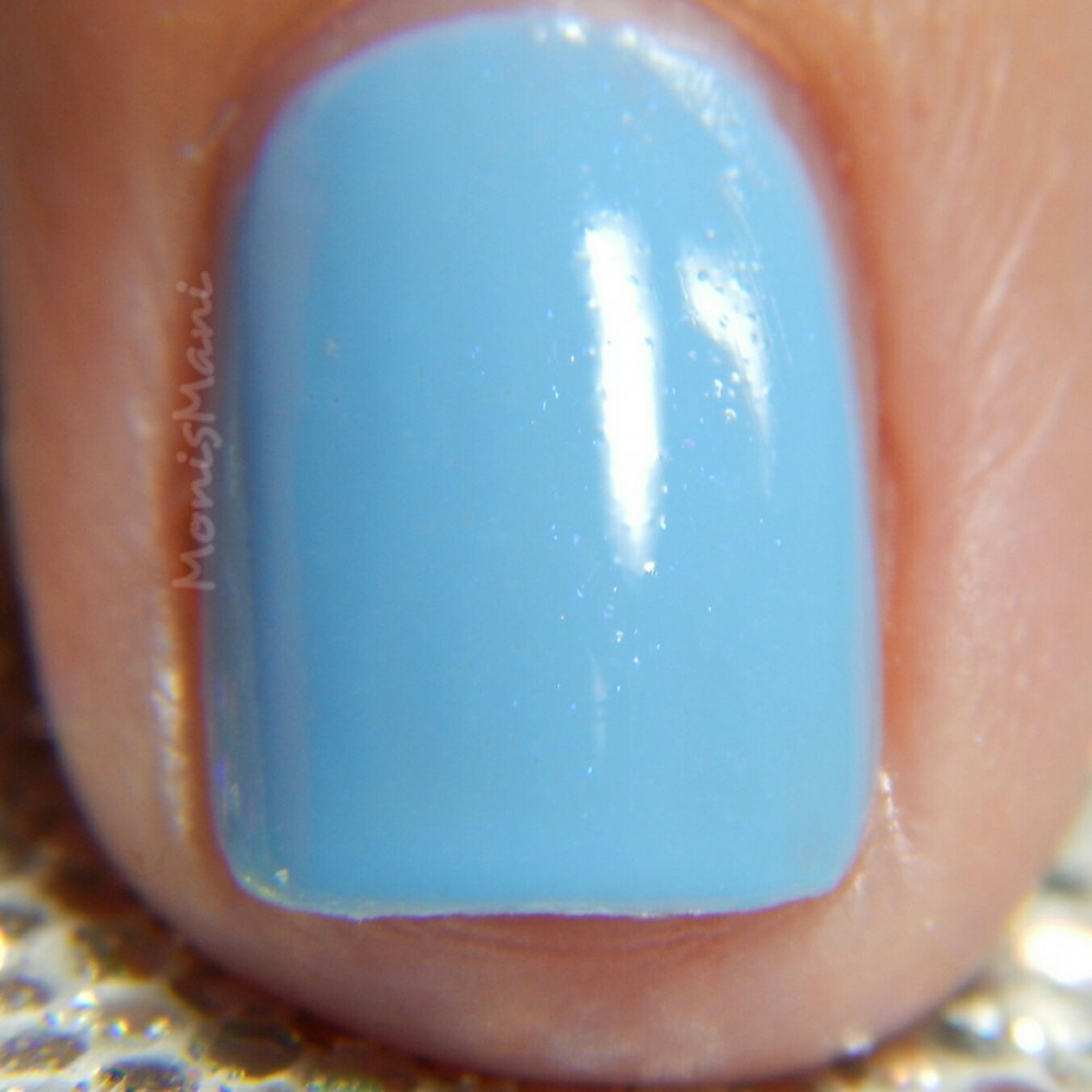 Is a pretty slightly greyed periwinkle/blue with a touch of blue shimmer, inspired by Pantone’s color of the year, Serenity. Again, the twinkle was a lot more visible in real life so sad the lights killed it on the pics. The formula was easy to work with, you see two coats plus one coat of top coat.