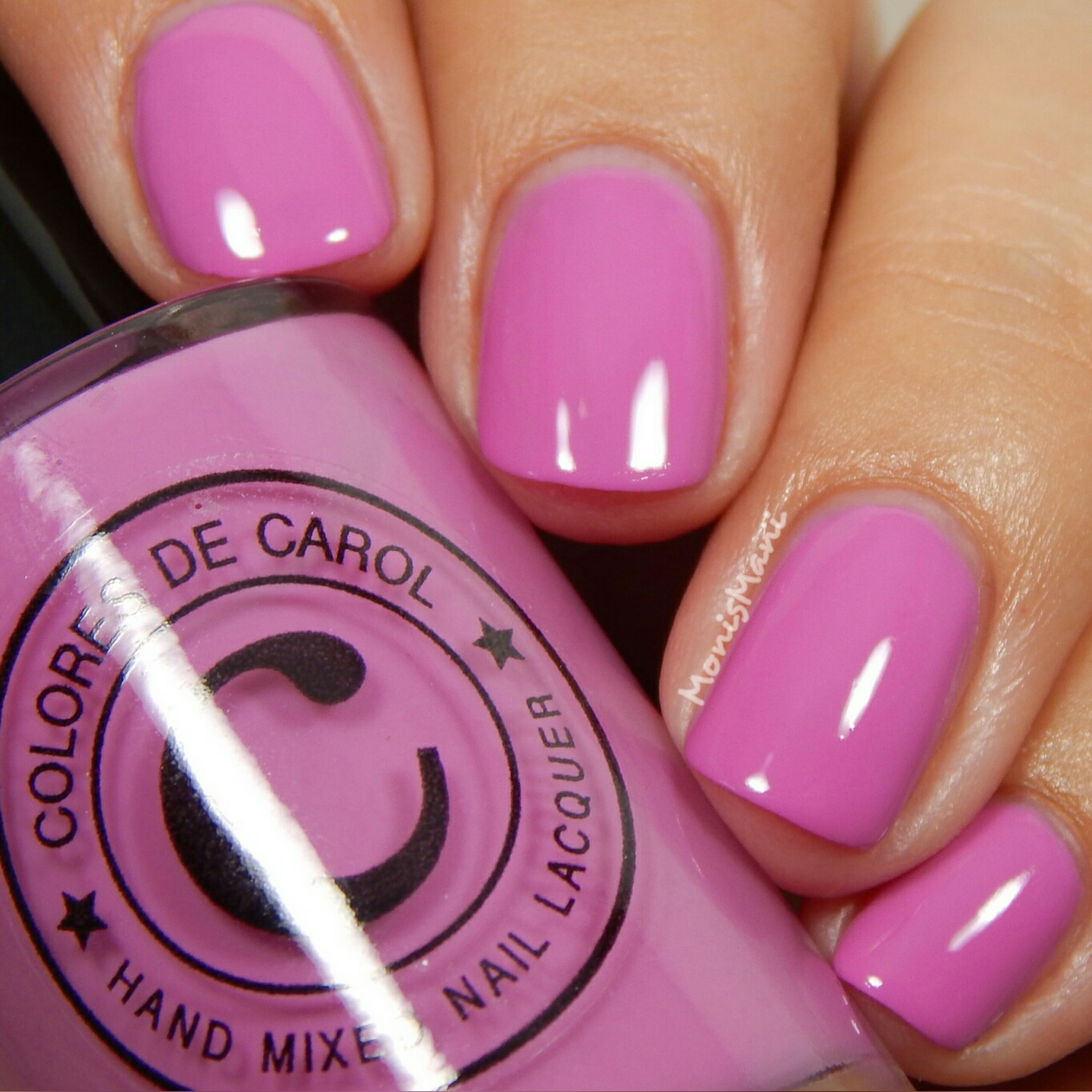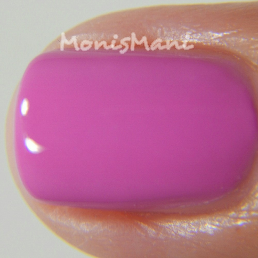 Is a super vibrant bubble gum pink. Opaque in 2-3 coats, good flowy formula and easy to work with. I did two coats plus glossy top coat for the pics.