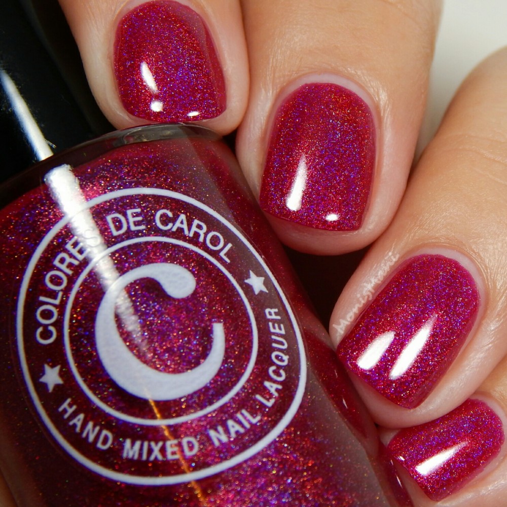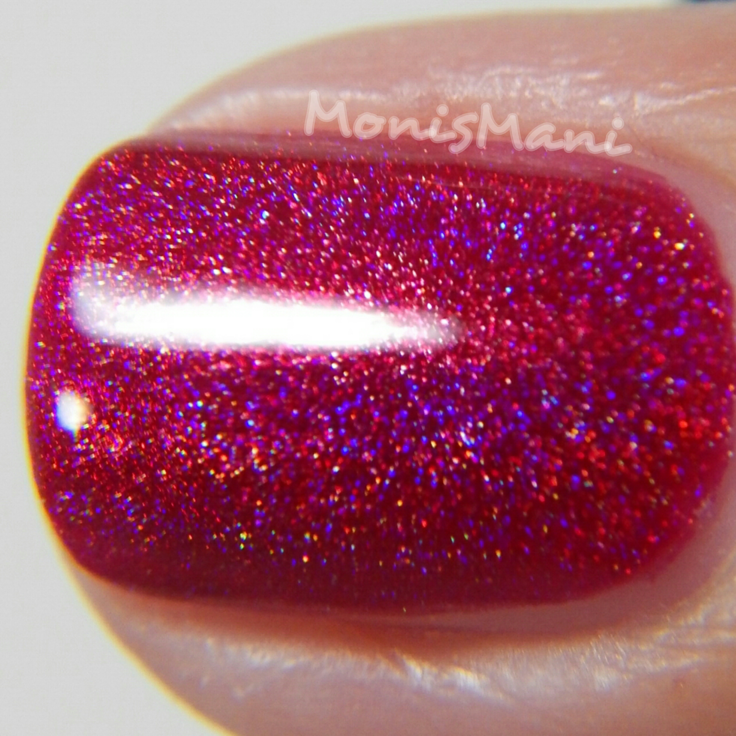Looove this beauty!! from the name to the shade to the formula. These were all great but this gorgeous deep berry red linear holo is definitely my favorite from this collection. So pretty!! Two coats plus glossy top coat in the pics.