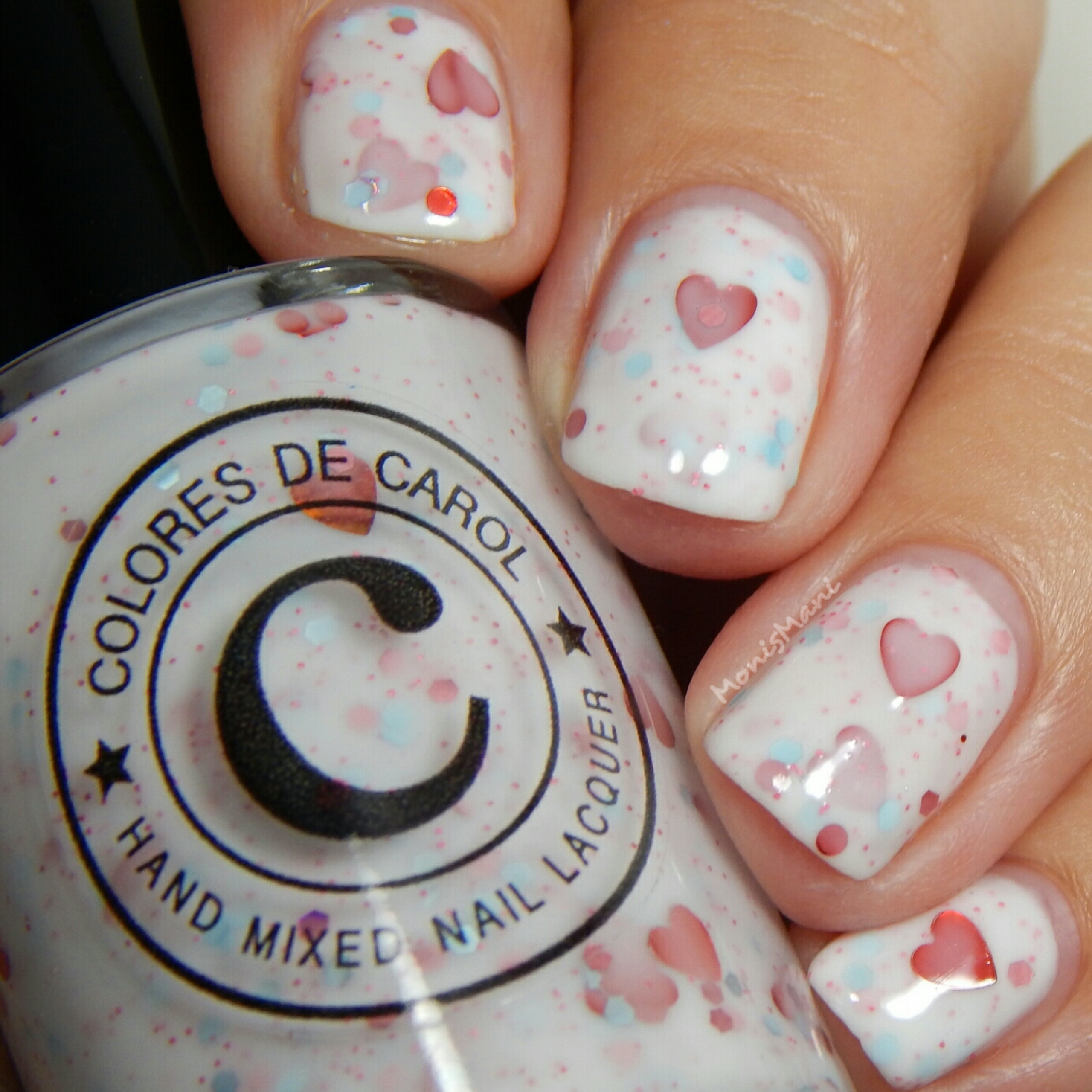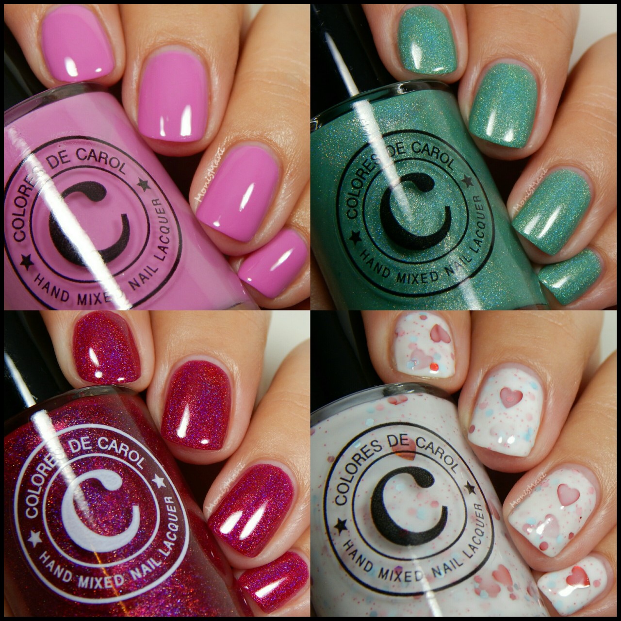 How are you?! It has been a crazy couple of days of doing nothing and everything at the same time. Huge snow storm, stuck at home, lots of shoveling, my birthday, birthday E.R. visit with a huge life threatening scare.. but here I am today writing to you once again and bringing you some beautiful polish!! So excited! Colores de Carol has come out with an awesome mini Valentine’s Day Collection let’s see it!!