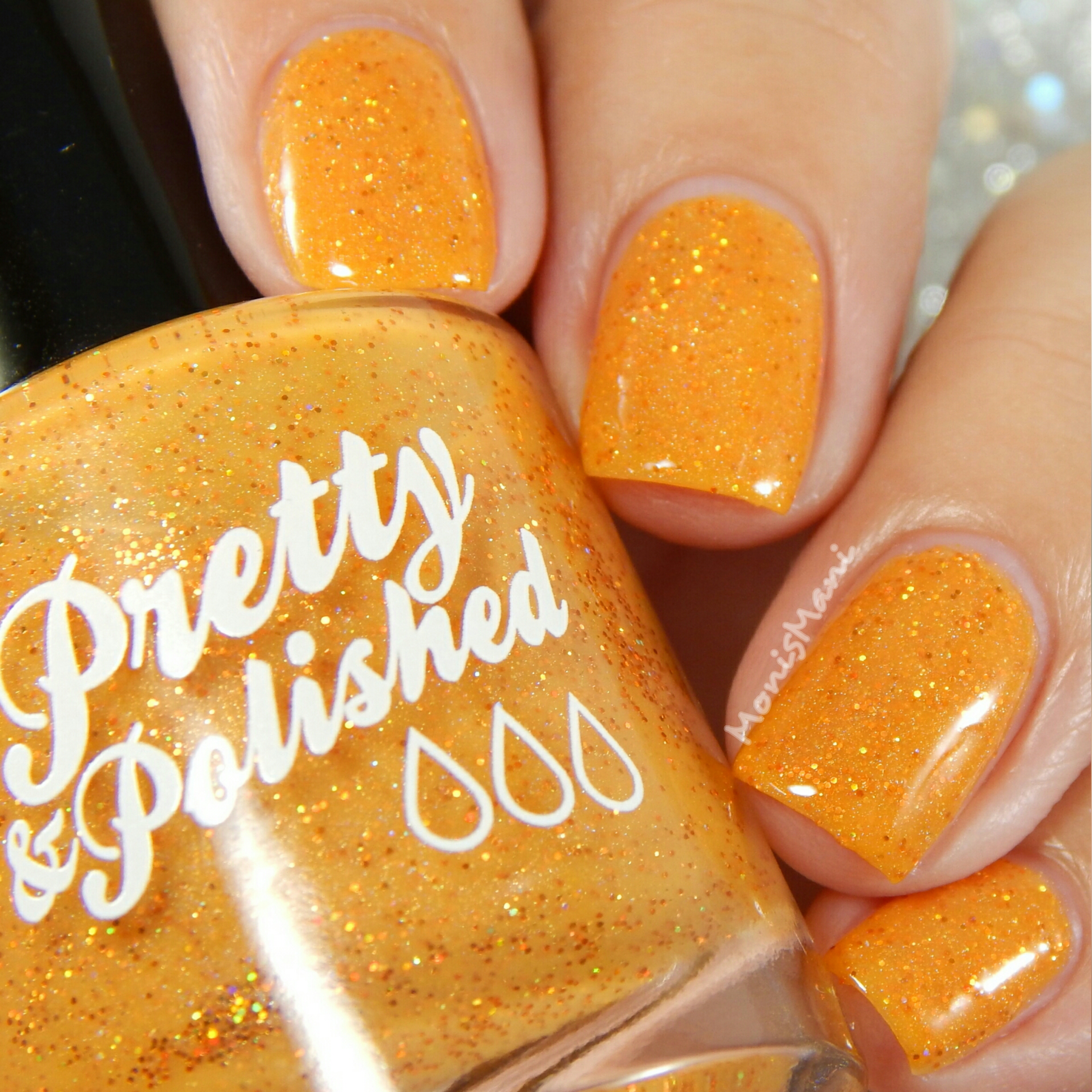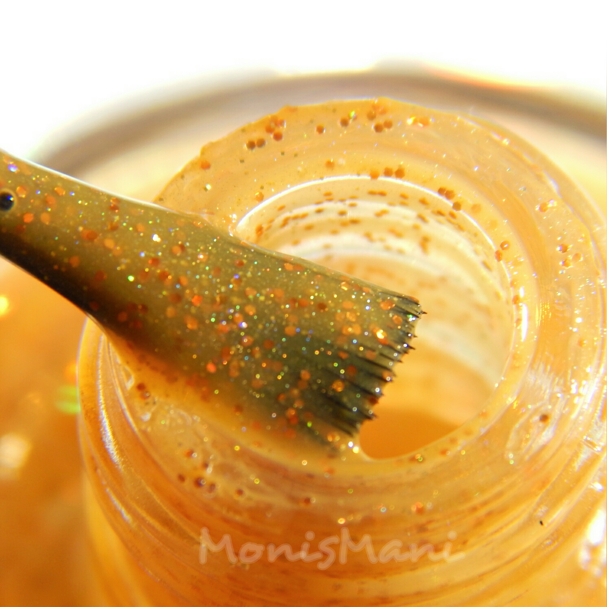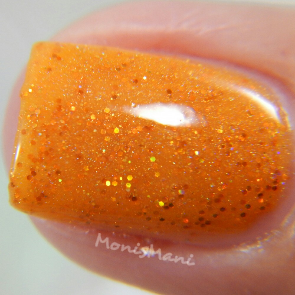 Named and inspired by a customer whose husband is currently on remission from Leukemia, this pretty orange holo jelly has a perfect formula, 2-3 coats for opacity, quick dry (2min in between coats) and look at that pretty twinkle! absolutely love it! and I’m not an orange polish lover at all! three thin coats plus glossy top coat in the pics.