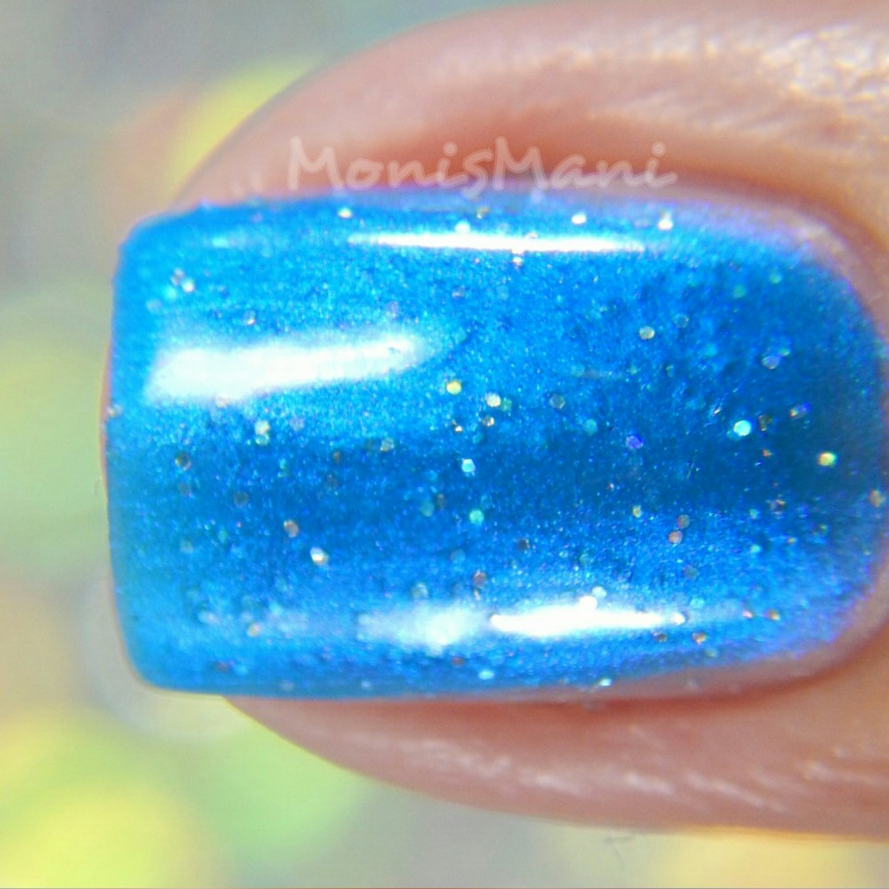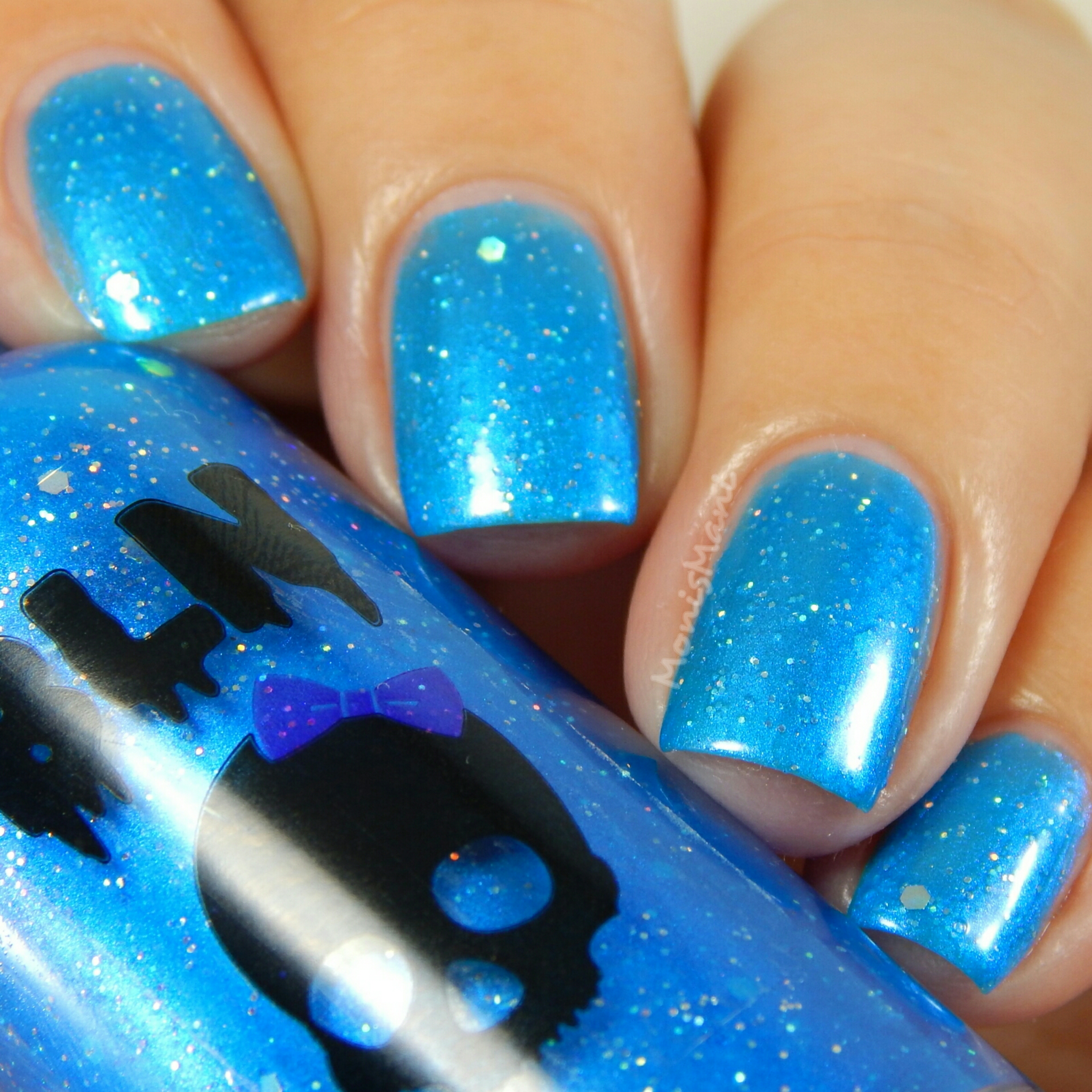 Described as “a bright blue fun scatter glitter holo” inspired by the song BadFish by Sublime.