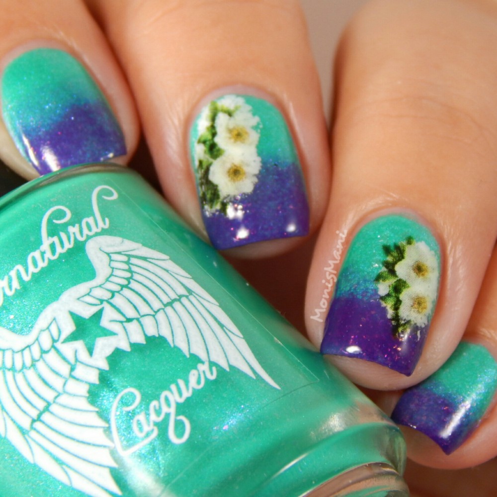 Cuticula also included a small strip of water decals, enough to give yourself an adorable mani.. here is mine below using the Supernatural and 77 Nail Lacquer polishes. Hope you like it!