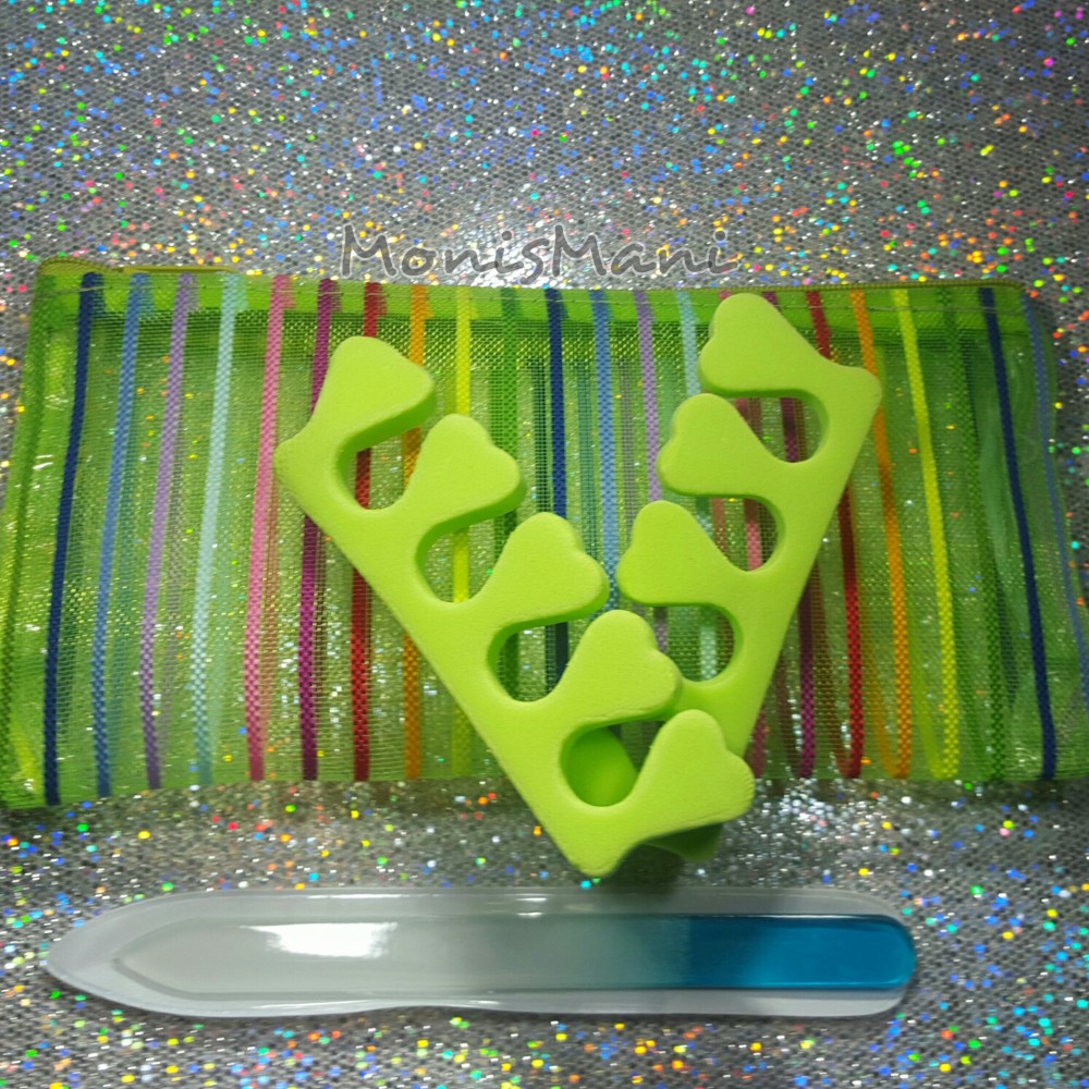 Extras are always great aren’t they? this box comes with the cute small make up bag size carry all, toe separators and a glass file. Perfect!