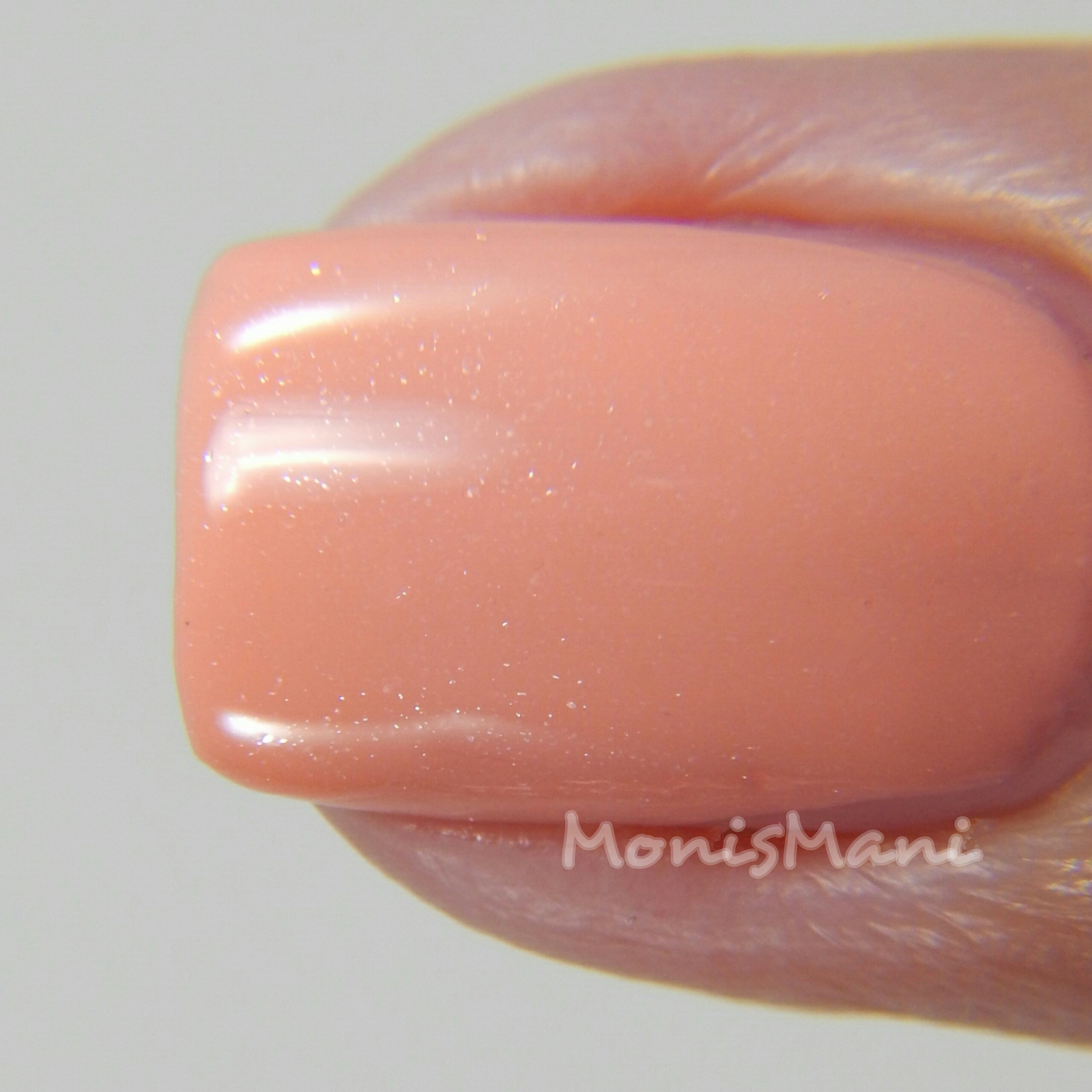 Described by the maker as “a pure pastel salmon cream with the slightest hint of sheen to mimic a petal soft finish.” You see three thin coats plus glossy top coat in the pics.