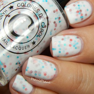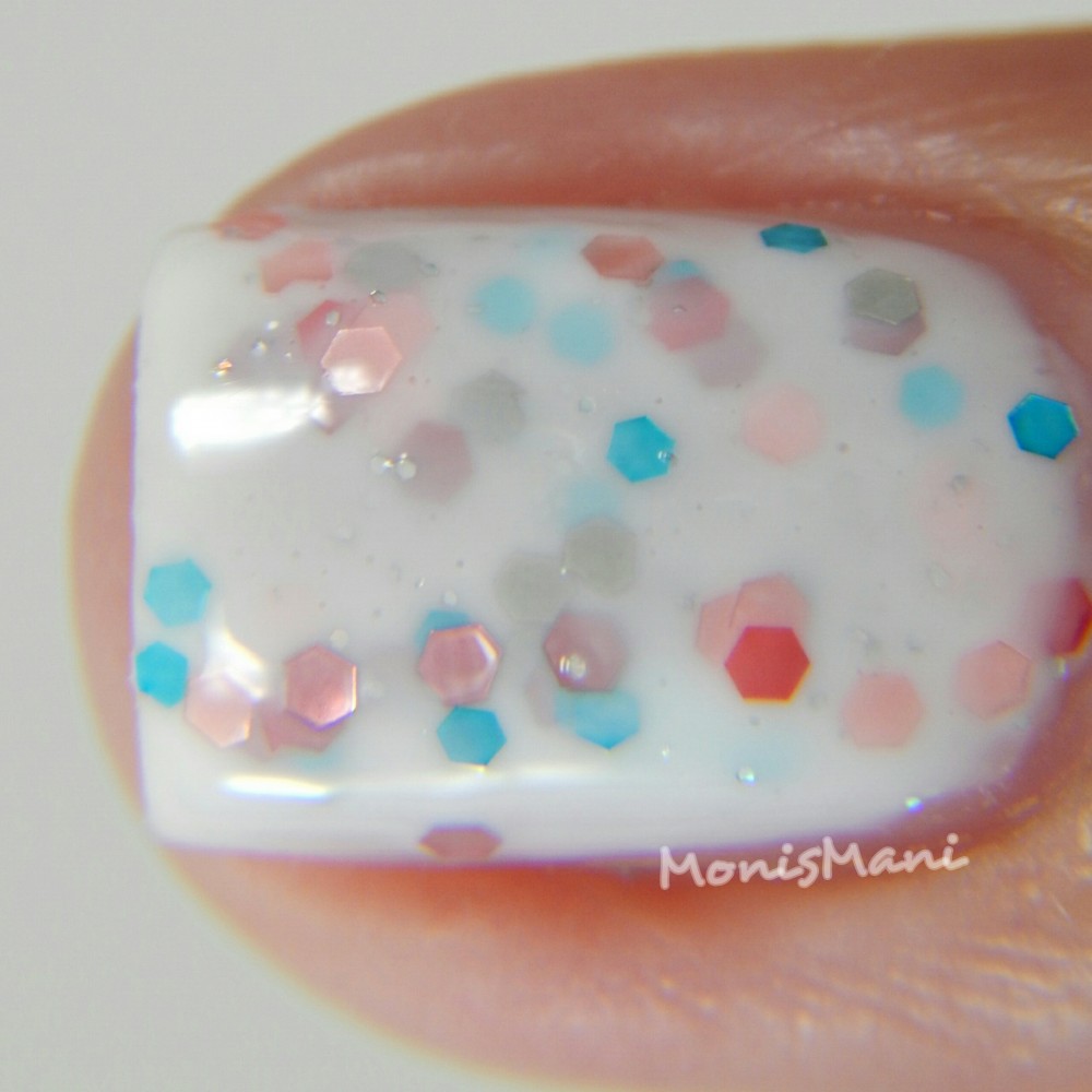 Is a total play on words, Carol said she’d do a white crellie and when I saw it I thought it was so cute that I decided to name it Monet as a play on words on the word “Mono” which means cute in Spain, seemed very fitting with the theme. Second pic is with a matte top coat.. I love it!