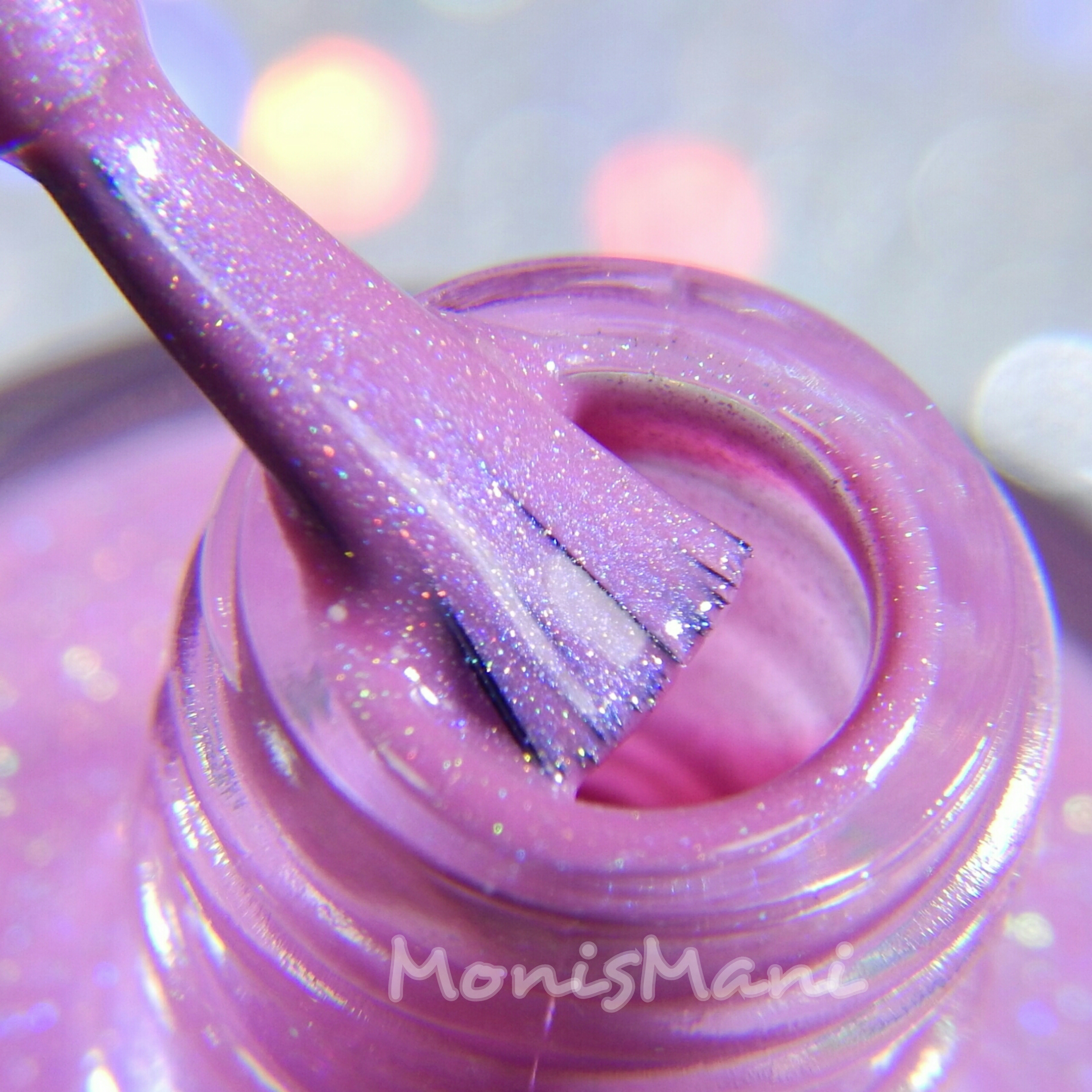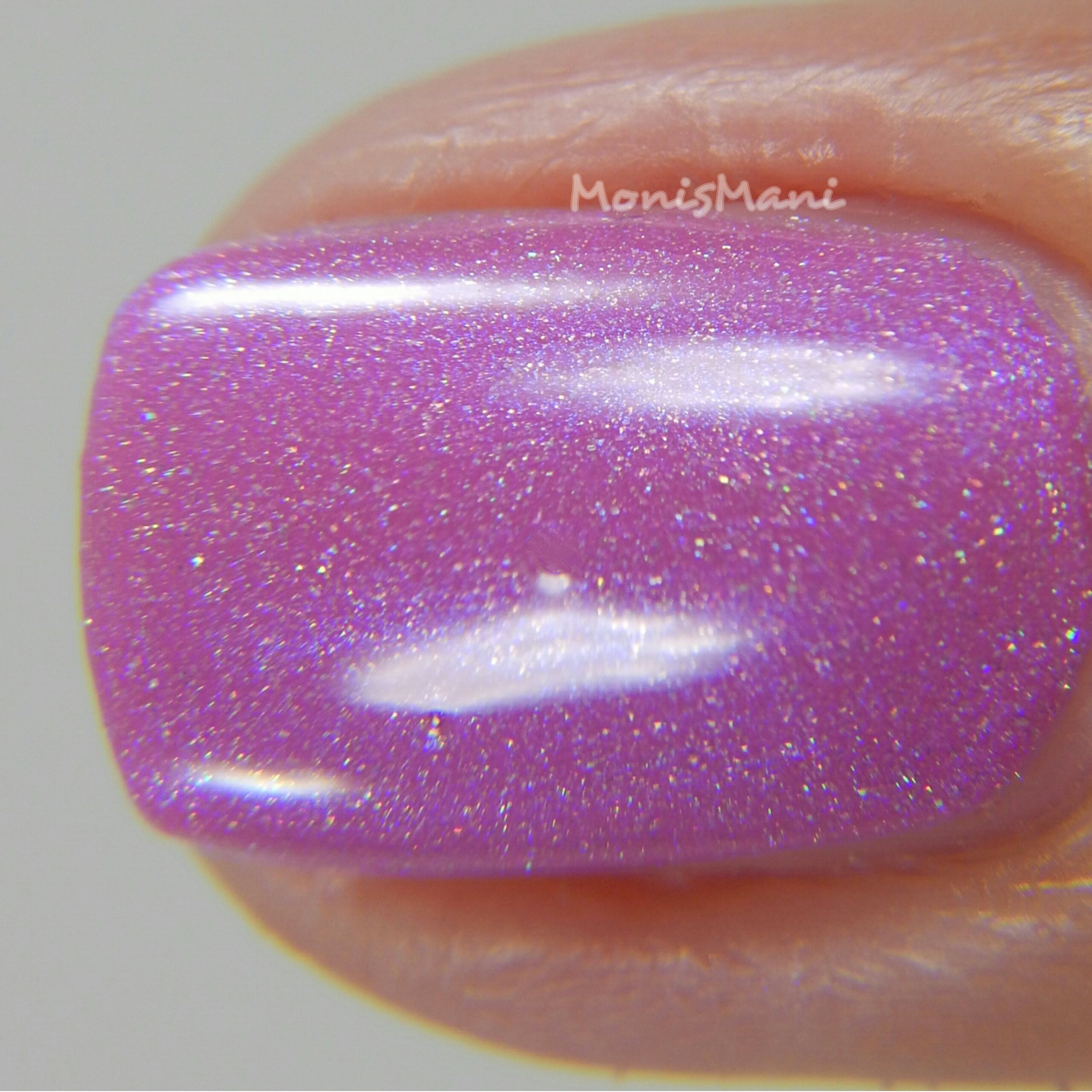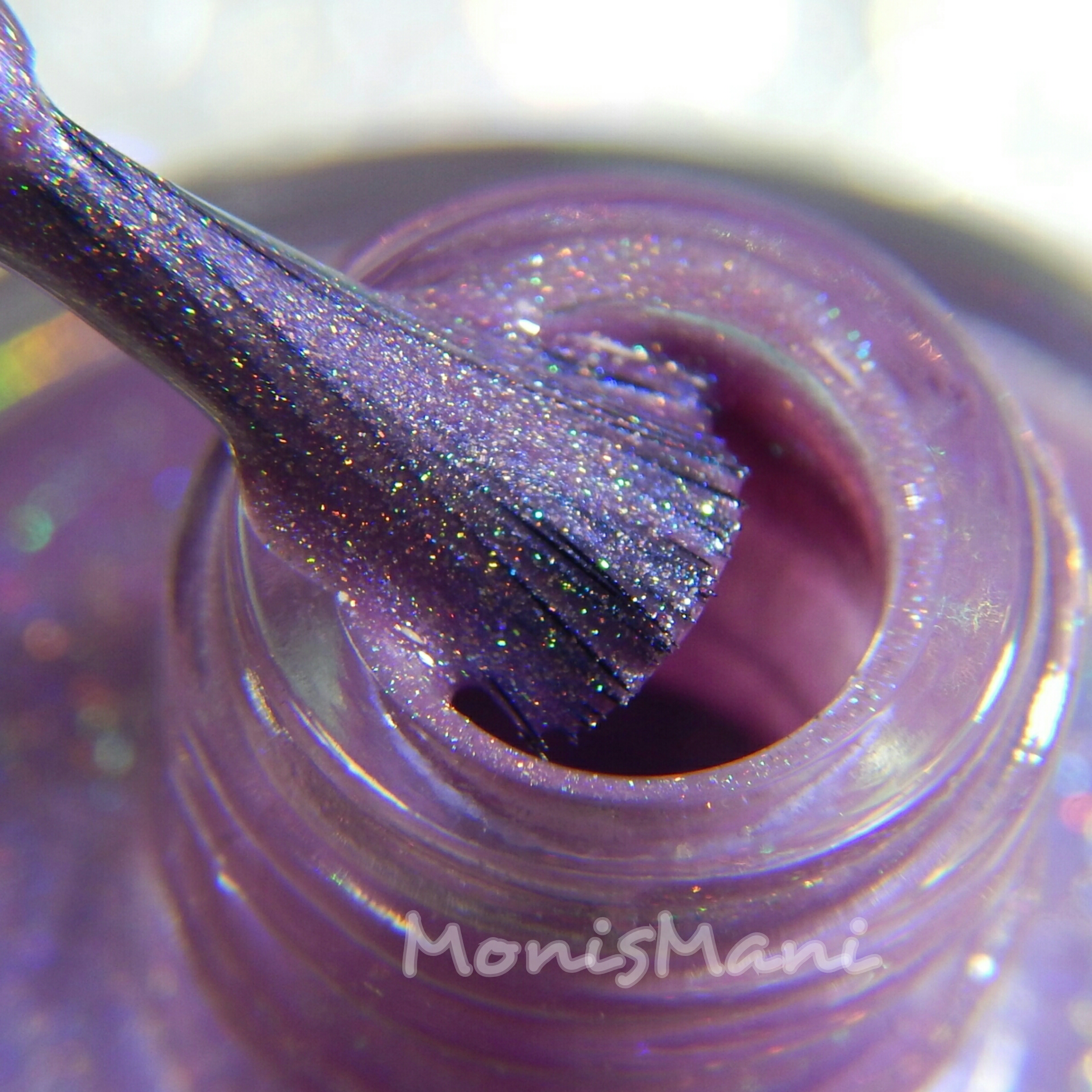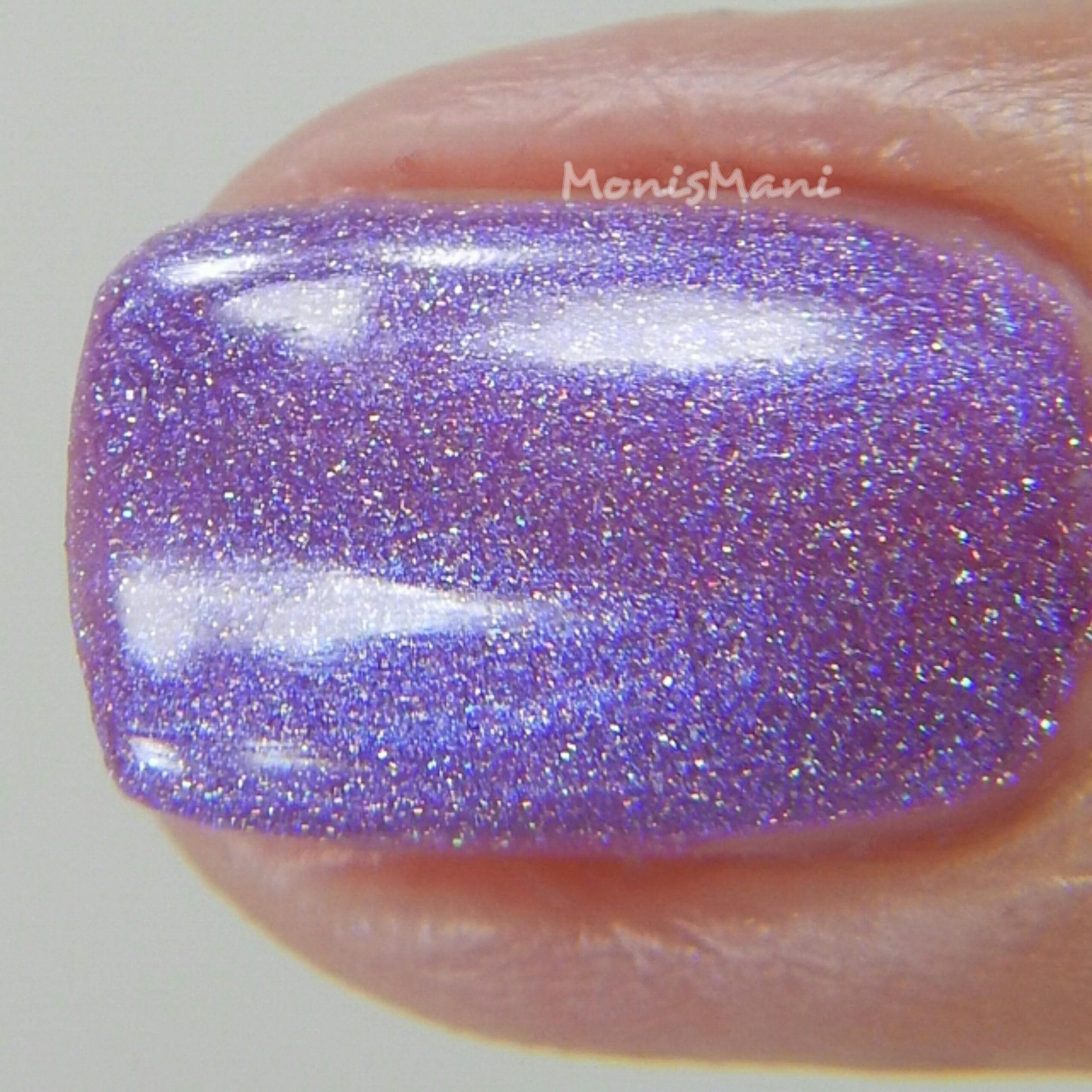 Is a purple holo with a flash of blue and silver holo micro glitter. Another absolute must have! you see three thin coats plus top coat in the pics