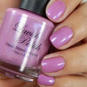 Is a light pink holo with silver holo micro glitter and a beautiful blue iridescent shine. You see three thin coats plus top coat in the pics.