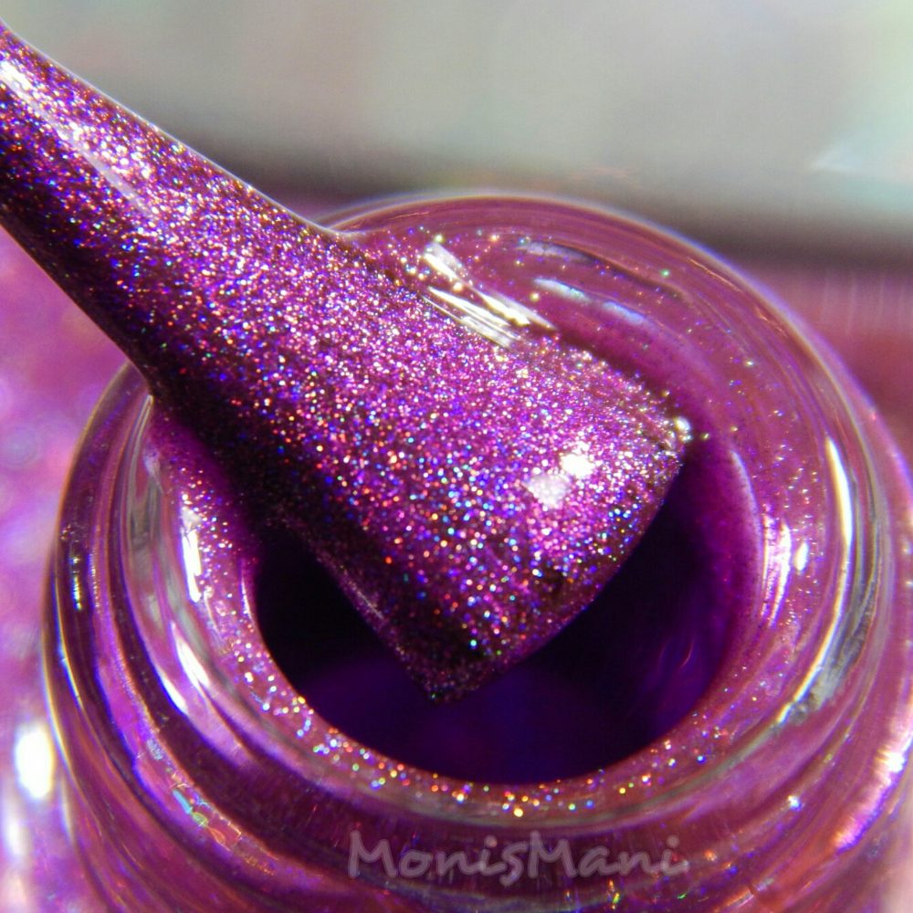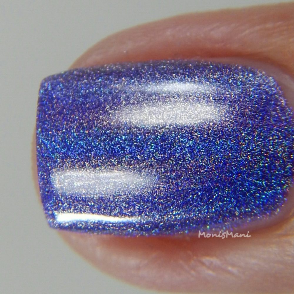 A beautiful blurple strong linear holo. Two coats plus glossy top coat in the pics. Sun shot.