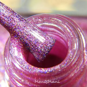 Pink strong linear holo with a touch of purple. Two coats plus glossy top coat in the pics. Third picture is sun shot.