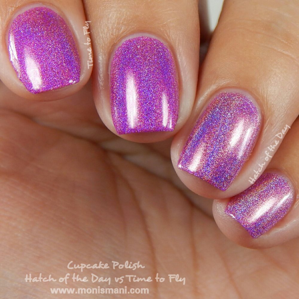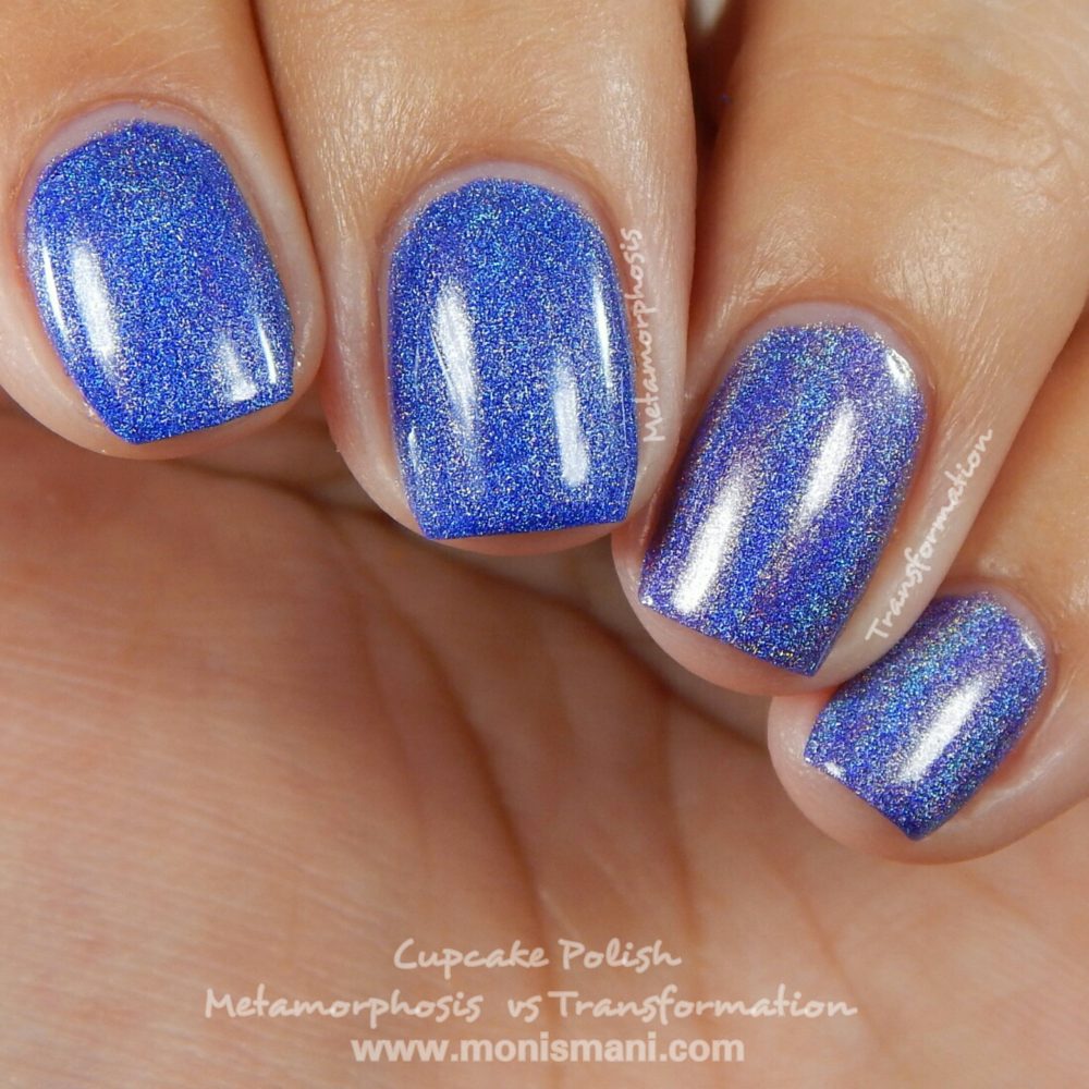 What do I think?? Cupcake Polish does not play around guys!! Sara knows how to pack a holo! These are all incredibly strong and really really beautiful! Two coats for all of these, wonderful flowy formula with the exception of Time to Fly and Metamorphosis which had a tiny bit of a thicker formula but all super easy to work with. If you are a holo lover you need them all! If you are a holo lover on a budget then you need Little Butterfly, Coccon and Time to Fly for sure.