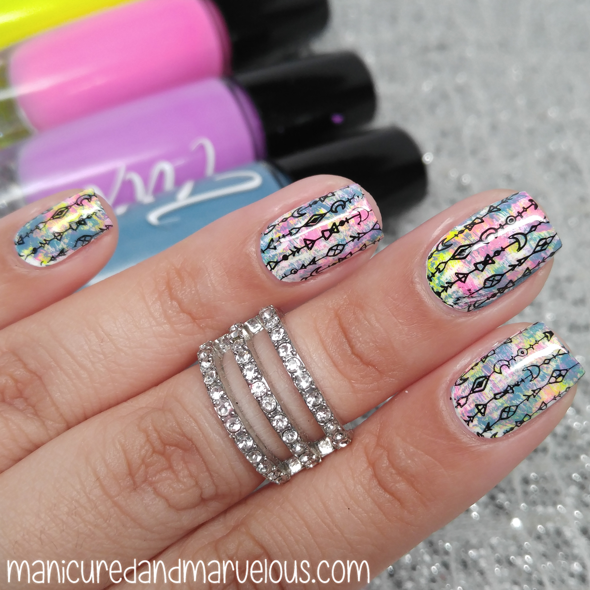Hiya guys! I’m Rose from the nail blog Manicured and Marvelous and I’m here to fill in today. Ever since my health has been on a down slope I have been only wanting to do simple nail art. One of the simplest designs I could think of is the dry brush technique. This whole design took me about 45 minutes and it would have been less had I not recorded and stamped. I’m like the biggest snail in existence so coming from me that’s a record breaking time, haha.