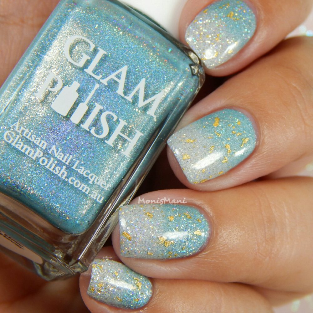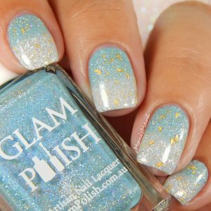This is a special mani for me, it’s one of those ideas you have forever and never get around to doing it, but when I received these two polishes from Glam Polish I knew they were perfect for the occasion and I was finally able to use the gorgeous ellagee gold flake topper I gifted myself for my birthday this year. Let’s first take a look at the polishes I used for my base/gradient.