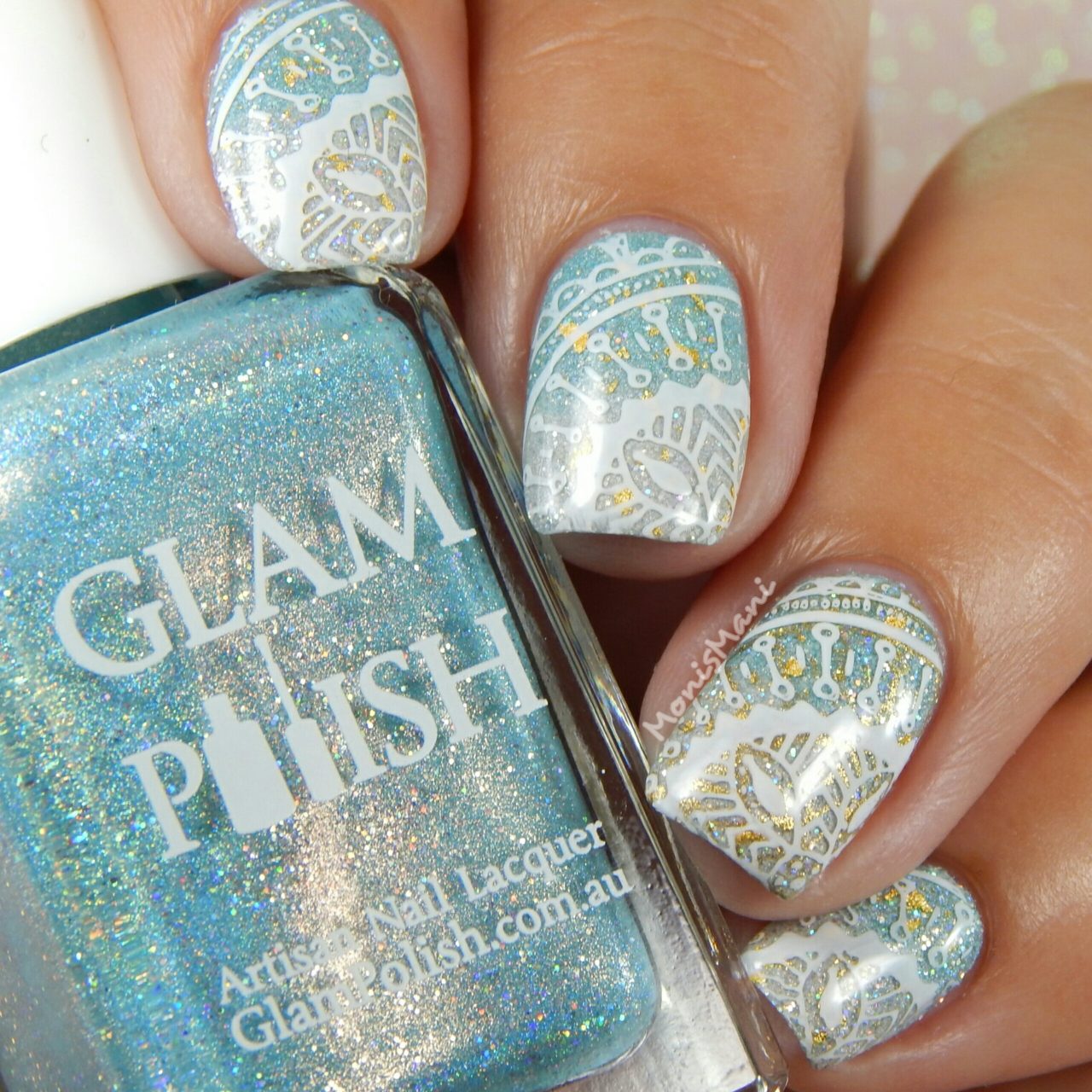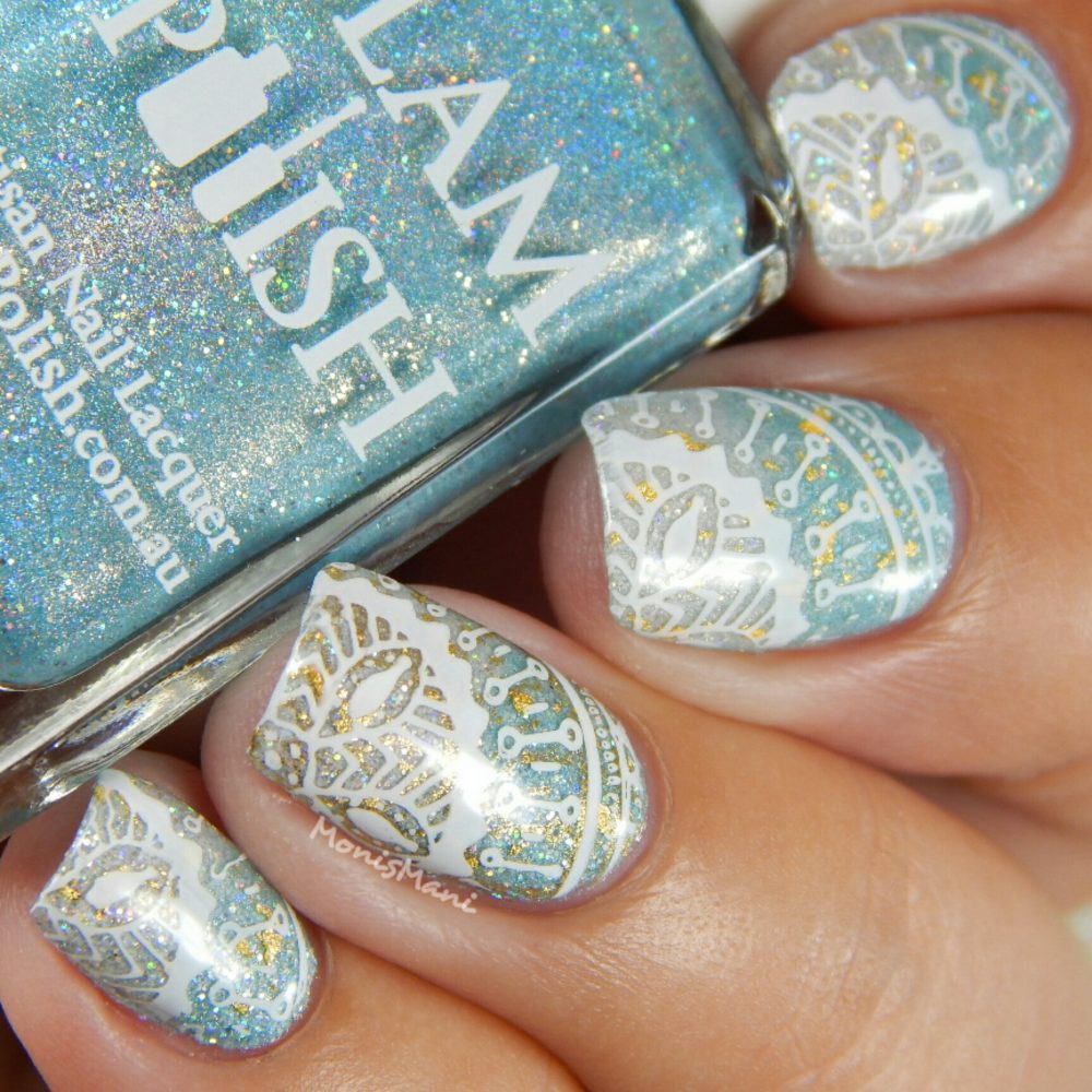 And just to add a special touch I decided to stamp using Konad white and UberChic image from 1-02