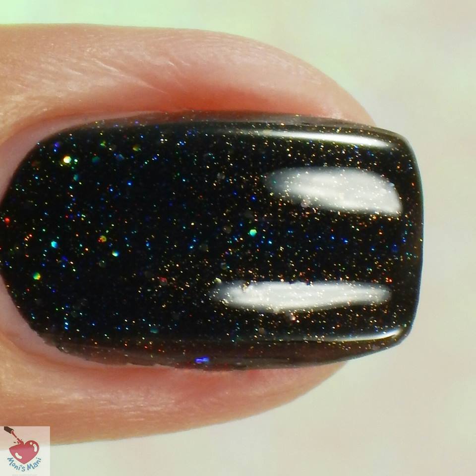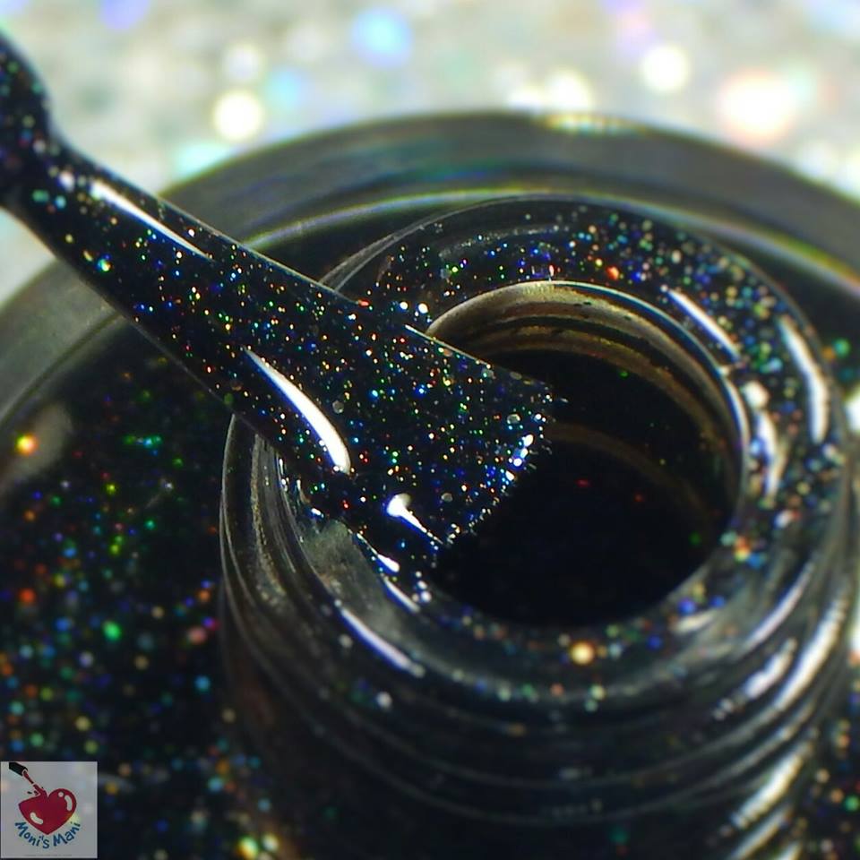 Is a deep black jelly holo packed with tiny holographic glitters.