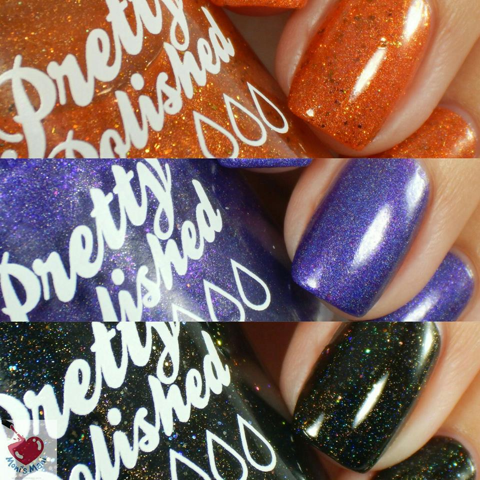 Hope you’re all doing great!! I have an awesome Halloween trio from Pretty & Polished to show you today. I was lucky enough to blog their Halloween collection last year (see that here) and loved it so I had high expectations for this one and I’m so happy to say it didn’t disappoint! As you might imagine by the name, these are all holo (ouuu yeahh). Let’s take a look at them one by one!