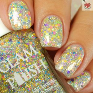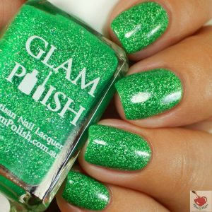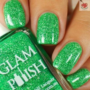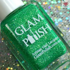 Again another “in yo-face” holo. Glam Polish you have been blessed with extreme holo abilities!! The formula on this is also amazing, easy to work with, great opacity, fast drying. You see three thin coats plus glossy top coat in the pics.