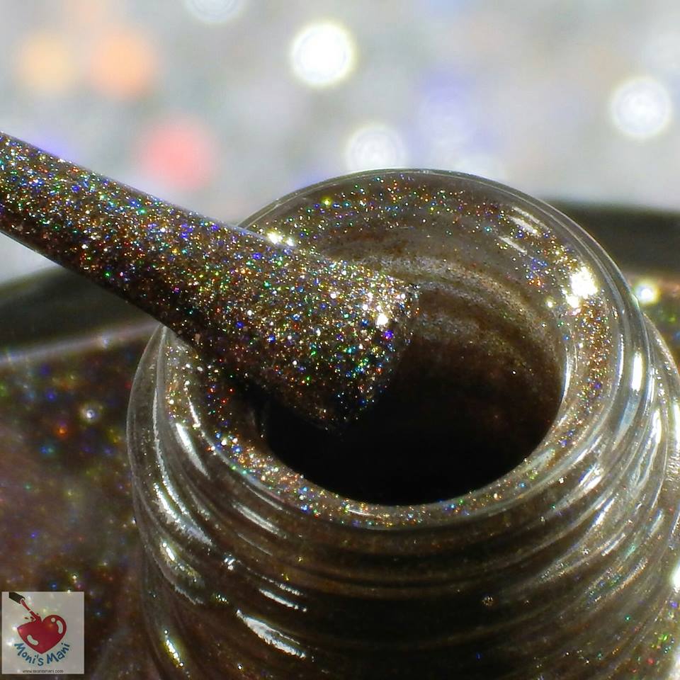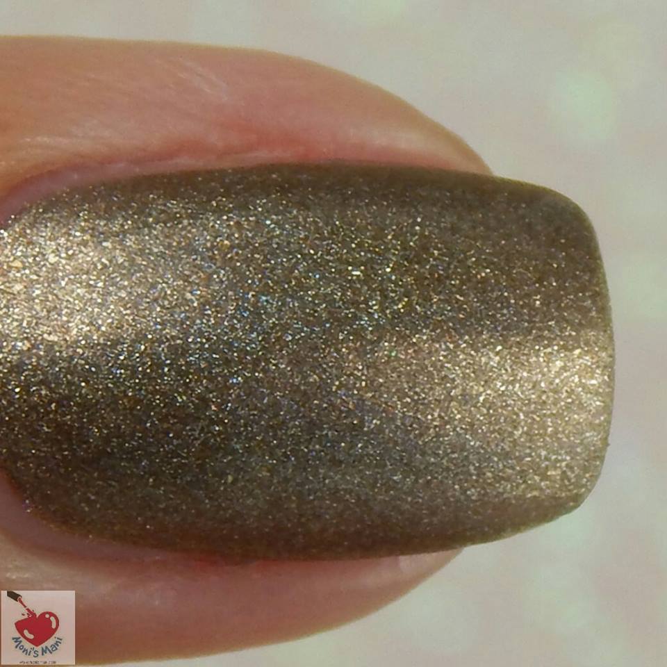 This is one hell of a beauty! Ahh so gorgeous and unique.. doesn’t it look like a really cool rusty bronzy sparkly jewel? The formula was wonderful, opacity in 2 coats for me. You see two coats plus glossy top coat in the pics.