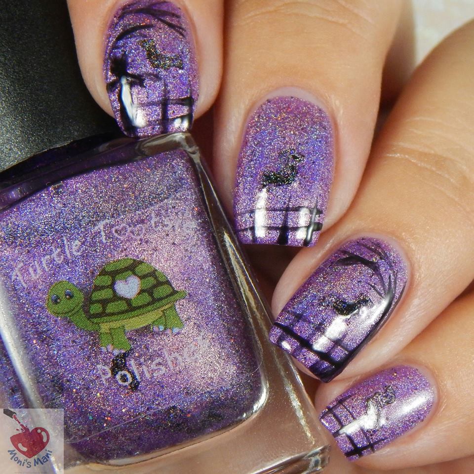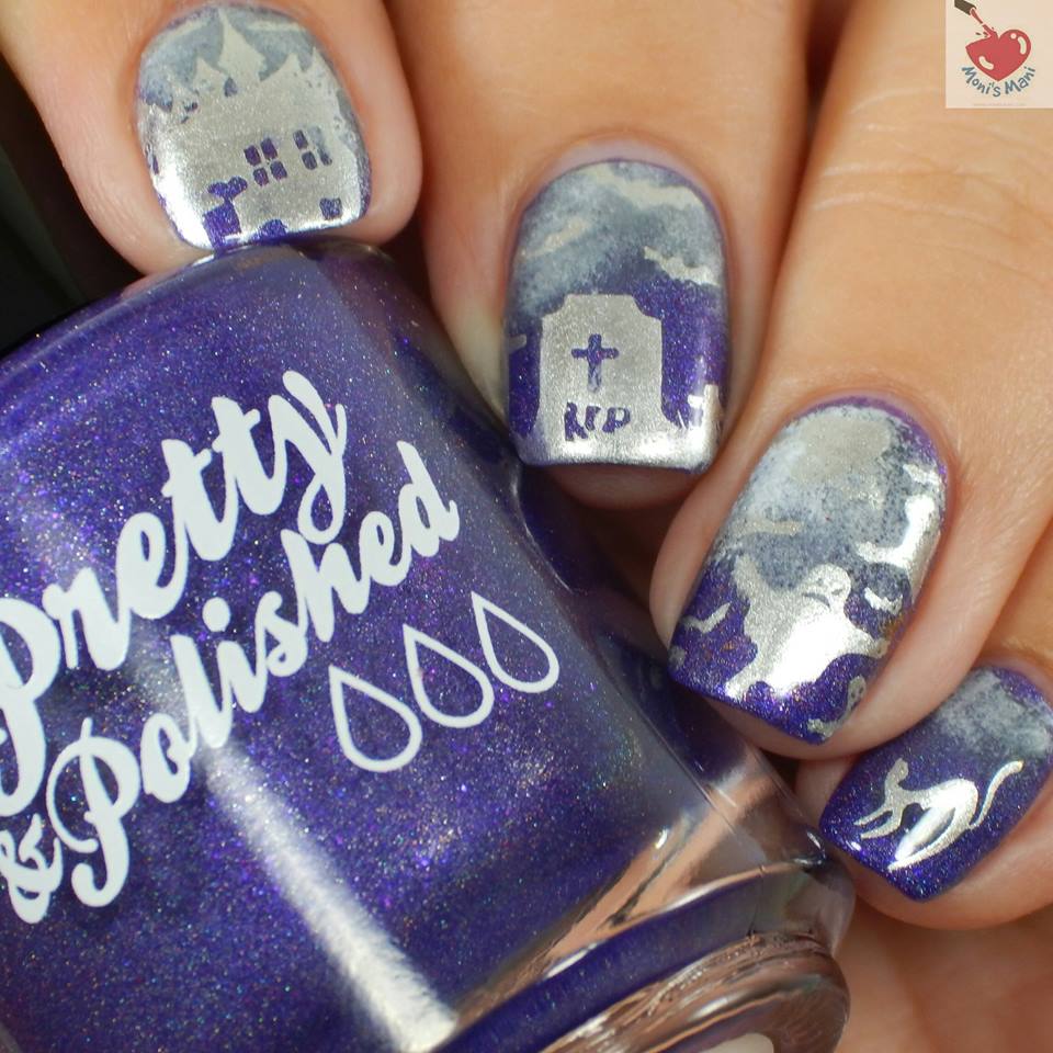 Is this polish not the perfect base for a gloomy forest? cause I think so! hahaha. For this baby I stamped using Bundle Monsters Halloween Set and sponged on the clouds and the fog at the tip.