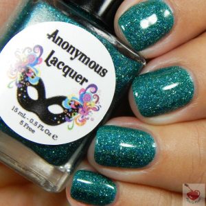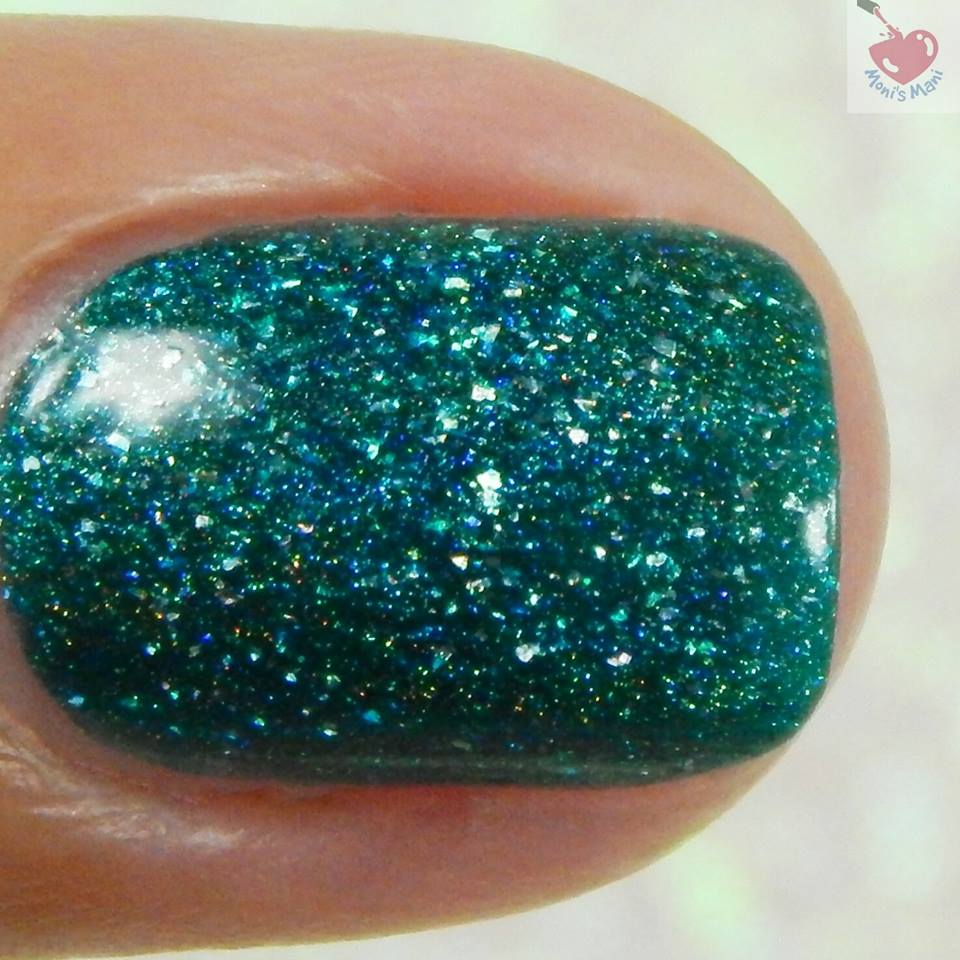 Is an ultra holo deep teal with holo flakes. GAW-GEOUS, seriously, gorgeous! this is one of those knock you off your feet polishes. The formula is perfection! You see three thin coats plus glossy top coat in the pics.