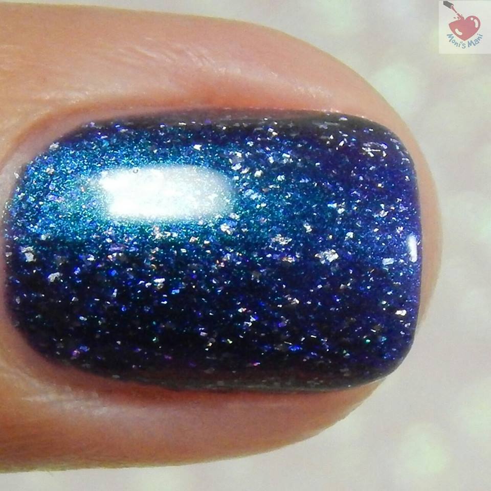 Is a blue to purple multishifter with gorgeous holo micro flakies. Absolutely PERFECT!! I think my fav of all the multi-shift polishes I have seen this season. Those micro flakies totally take the win! You see three thin coats plus glossy top coat in the pics.. third coat totally unnecessary .