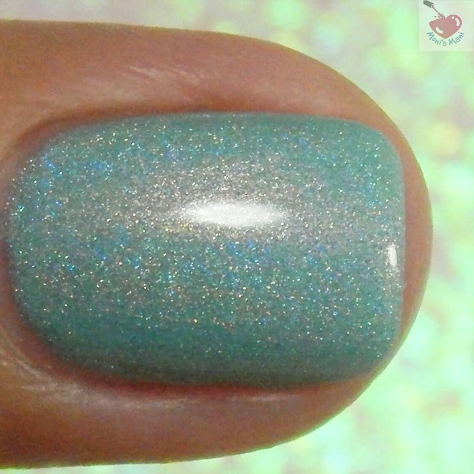 Is a light holo mint blue with rose gold shimmer. Ahhh so pretty!! this is super unique and definitely not your typical “winter” polish. Beautiful, super soft and that shift is ever so beautiful! You see three thin coats plus glossy top coat in the pics.