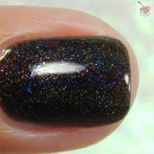 Is a black with multi chrome shifty flakes. Pretty pretty pretty!! this is quite the popular shade this winter, what’s special about this one? flakies are bigger! yay! You see three super thin coats plus glossy top coat in the pics