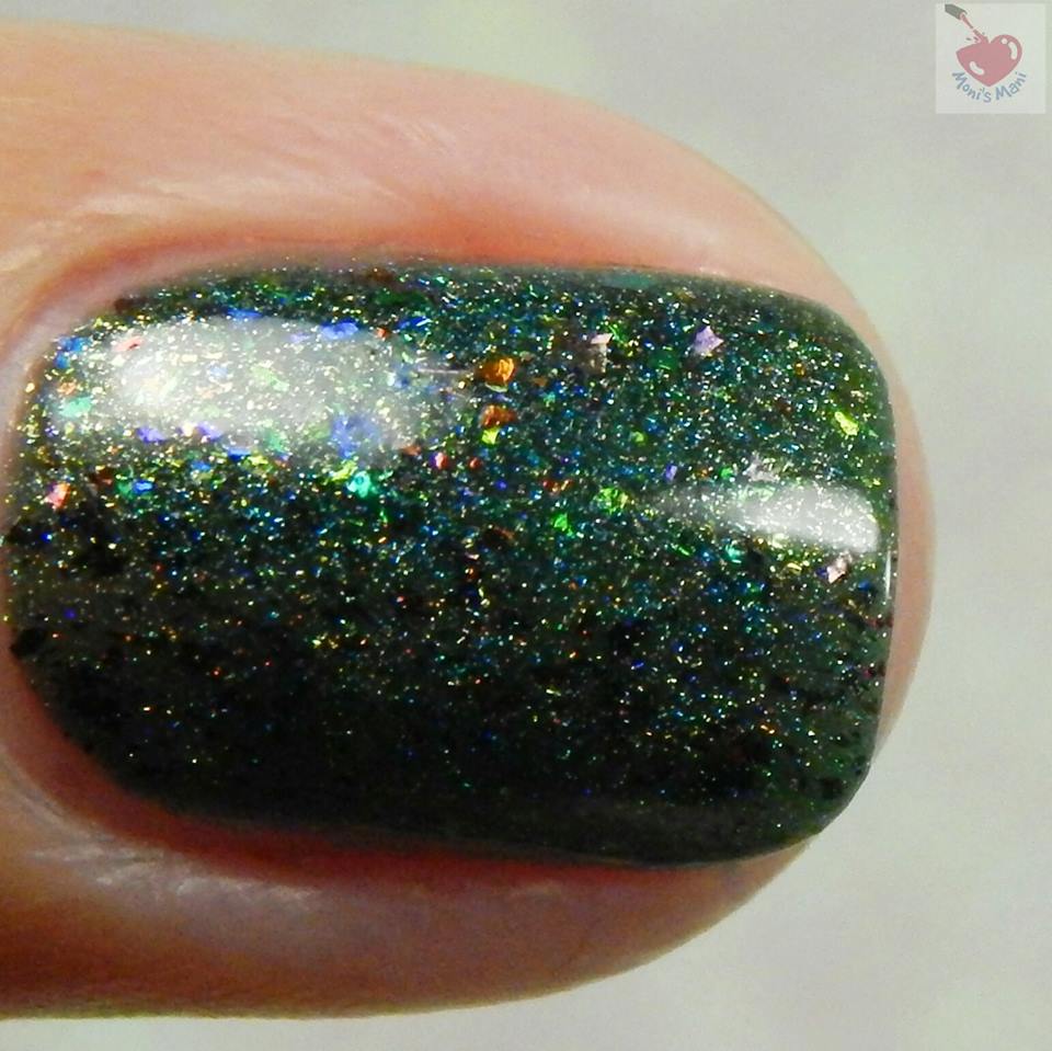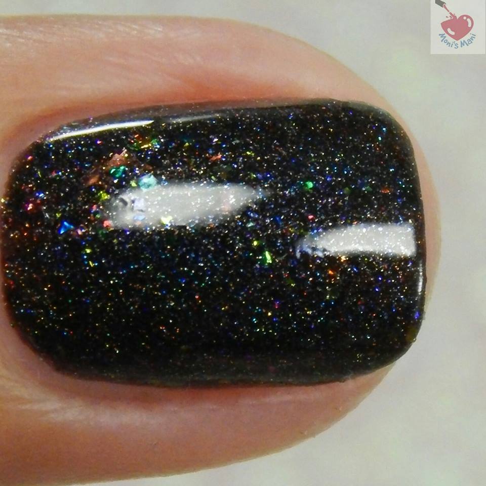 Is a charcoal subtle holo with blue/lavender shifting shimmer plus a rainbow of color shifting ultrachrome flakes.