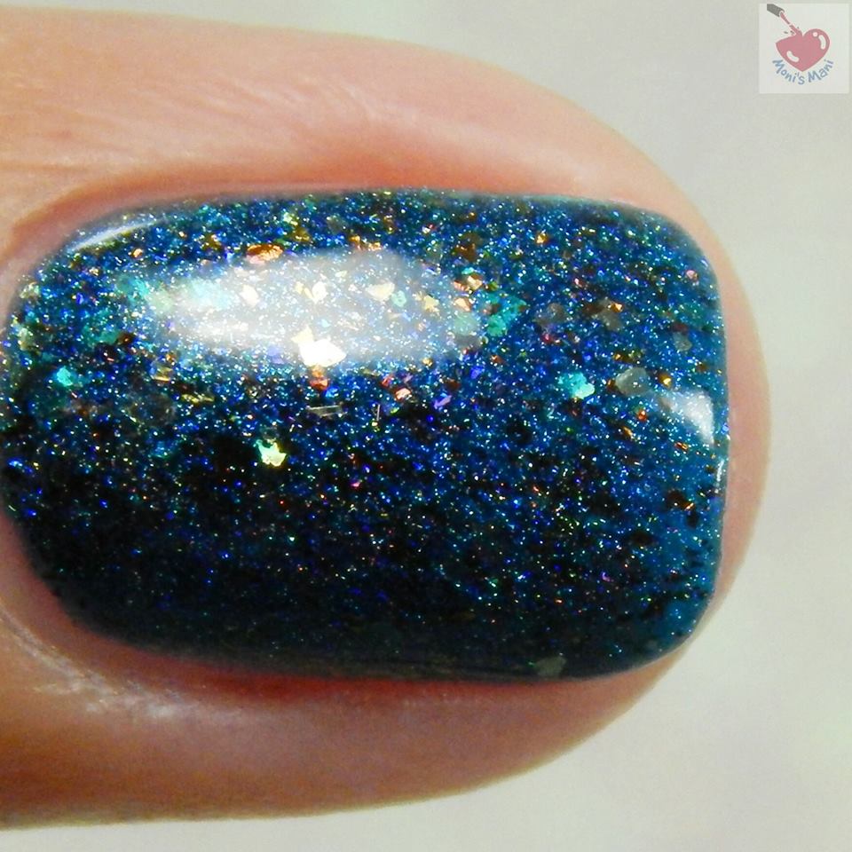 Is a smokey navy blue subtle holo with bright blue shimmer plus color shifting ultrachrome flakes.