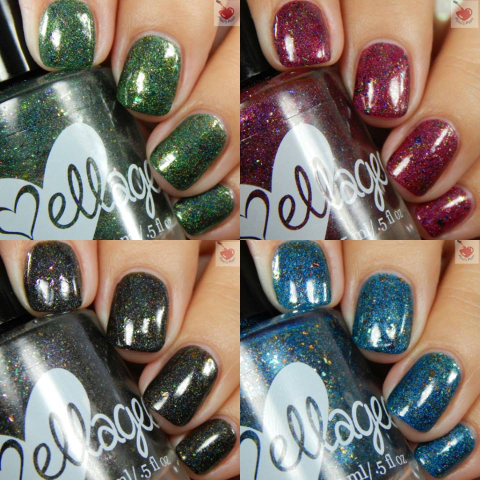 Today I have for you ellagee’s Cozy Winter Nights. I usually love ellagee’s mix of holo+ flakies but this I super extra x 100 love them! those flakies are kicking some booty! Let’s take a lot at this four piece collection shall we?