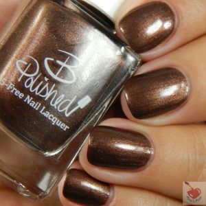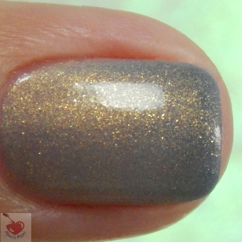Coffee & Crosswords is a rich brown with red shimmer and micro flakes. Inspired by both of the maker’s maternal grandparents. Every morning they would have their coffee and work on the Sunday paper crossword puzzle with a red marker, no pencils for them! You see two coats plus glossy top coat.